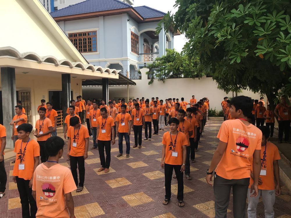 しかし、バンケンコンから車で北西へ30分ほどのトゥールコック区にある送出機関「アクセル アジア ヒューマンリソーシズ」日本語学校の『朝礼』を訪れると、そんなカンボジア人の印象が一変させられる。