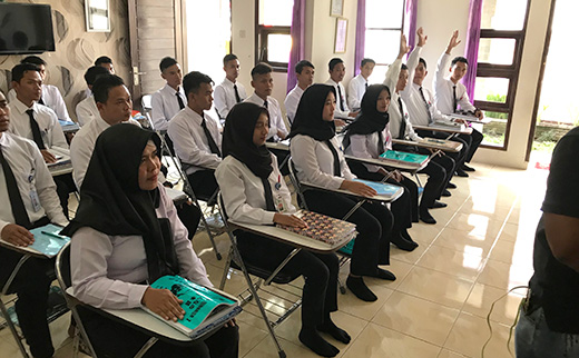 語句や文法のわかりにくい部分はインドネシア人の講師が、会話練習は日本人講師が担当。連携指導により効率よく・確実に日本語でコミュニケーションできる力を育みます。なお、インドネシア人講師の多くが技能実習経験者で、実習生として知っておくべきことを自身の経験に基づいて指導を行っています。